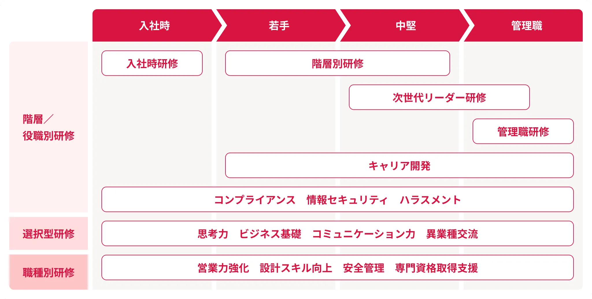 各階層のニーズに合わせた研修を多数用意しております。