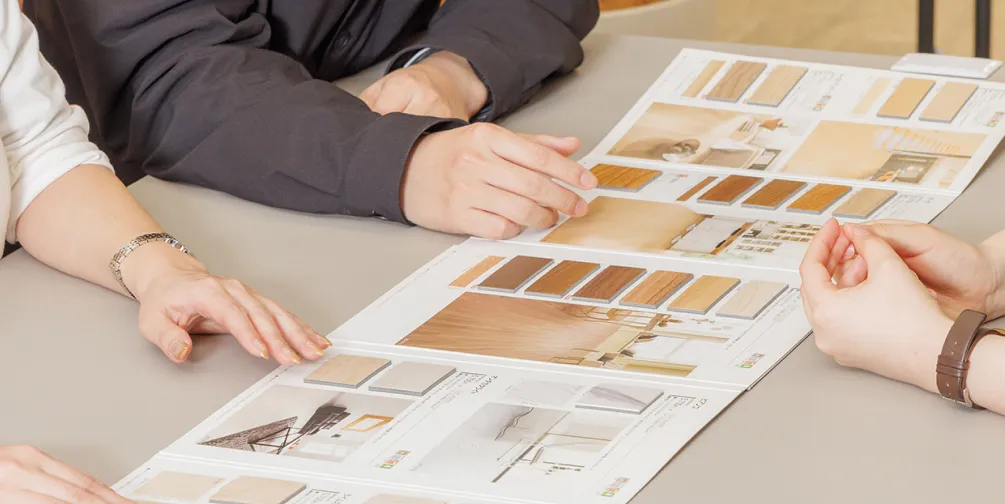 経営陣や総務部門、実際のユーザーとなる社員へのヒアリングを通して、お客様の課題・ニーズを紐解き、理想のオフィス空間を実現するためのプランを作成します。商品そのものだけでなく空間全てを提案するため、設計や施工業務担当者とともにお客様の働き方に合わせたプランを作りあげます。