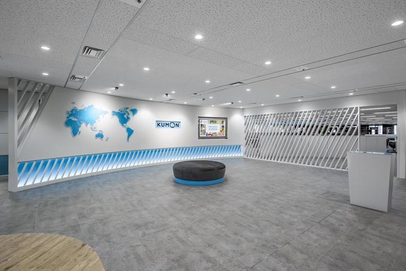 受付横にあるシェアコミュニケーションスペース。公文の先生方への研修後、意見交換の場としても活用しています。