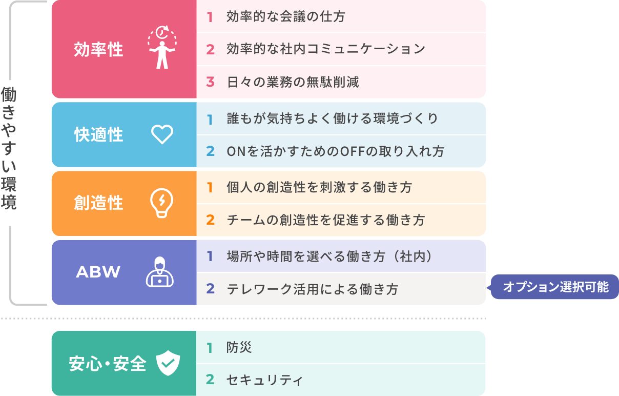 オフィスに重要な10個※のテーマから課題解決の方向性を導き出します